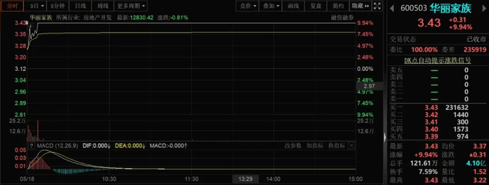 徐翔概念股异动!5月18日,华丽家族涨停,宁波中百、文峰股份、大恒科技均上涨明显。