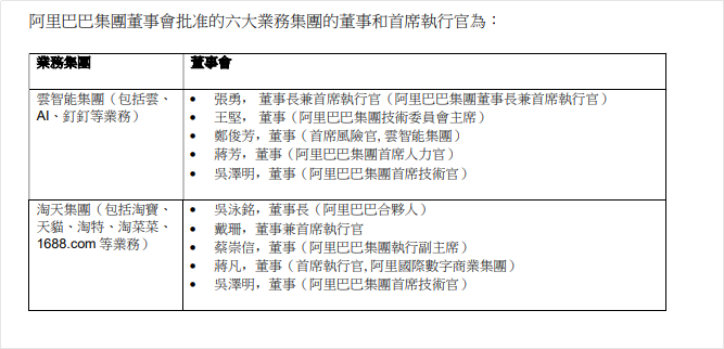财报还显示,阿里巴巴集团董事会已批准和任命六大业务集团董事会。