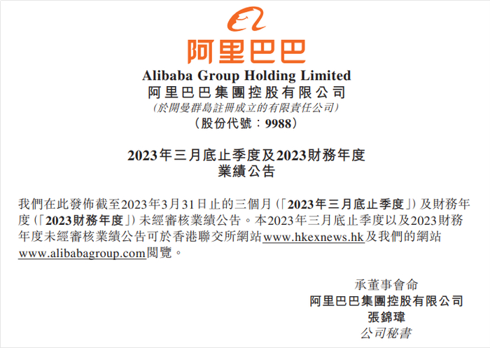 阿里在财报中表示,除淘天集团仍将继续由阿里巴巴集团全资拥有外,另五家业务集团都可以灵活地筹集外部资金,并可能寻求单独上市。
