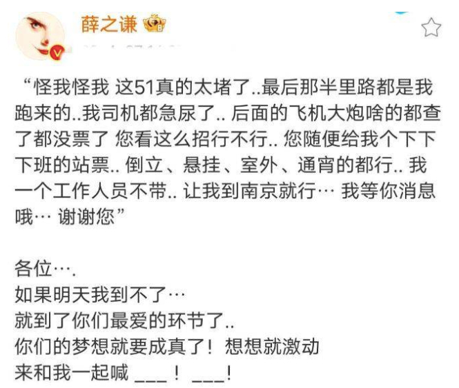 因为看演唱会的人太多了,歌手薛之谦自己都抢不到飞机票,来回得坐高铁。