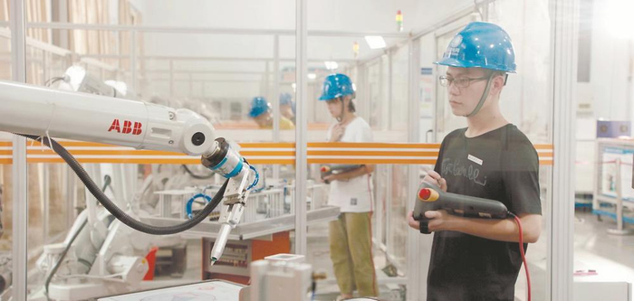 黎明职业大学智能制造工程学院学生在实训室学习。
