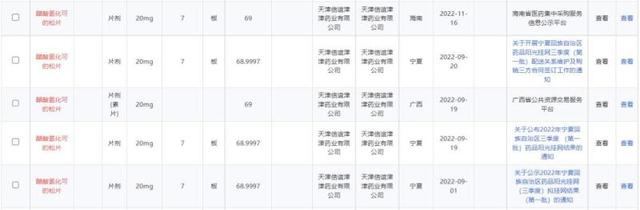 但也有网友表示,旧版药品的涨价也非空穴来风,而是根据新版药品的定价来上涨。对此,澎湃新闻查询到,部分省市统一采购该药品的中标信息公示,天津信谊津津药业生产的新版醋酸氢化可的松为7片/板,采购价为69元/板,也就是每片药物的价格将近10元,与涨价后1000元每瓶(100粒)实际上价格一致。
