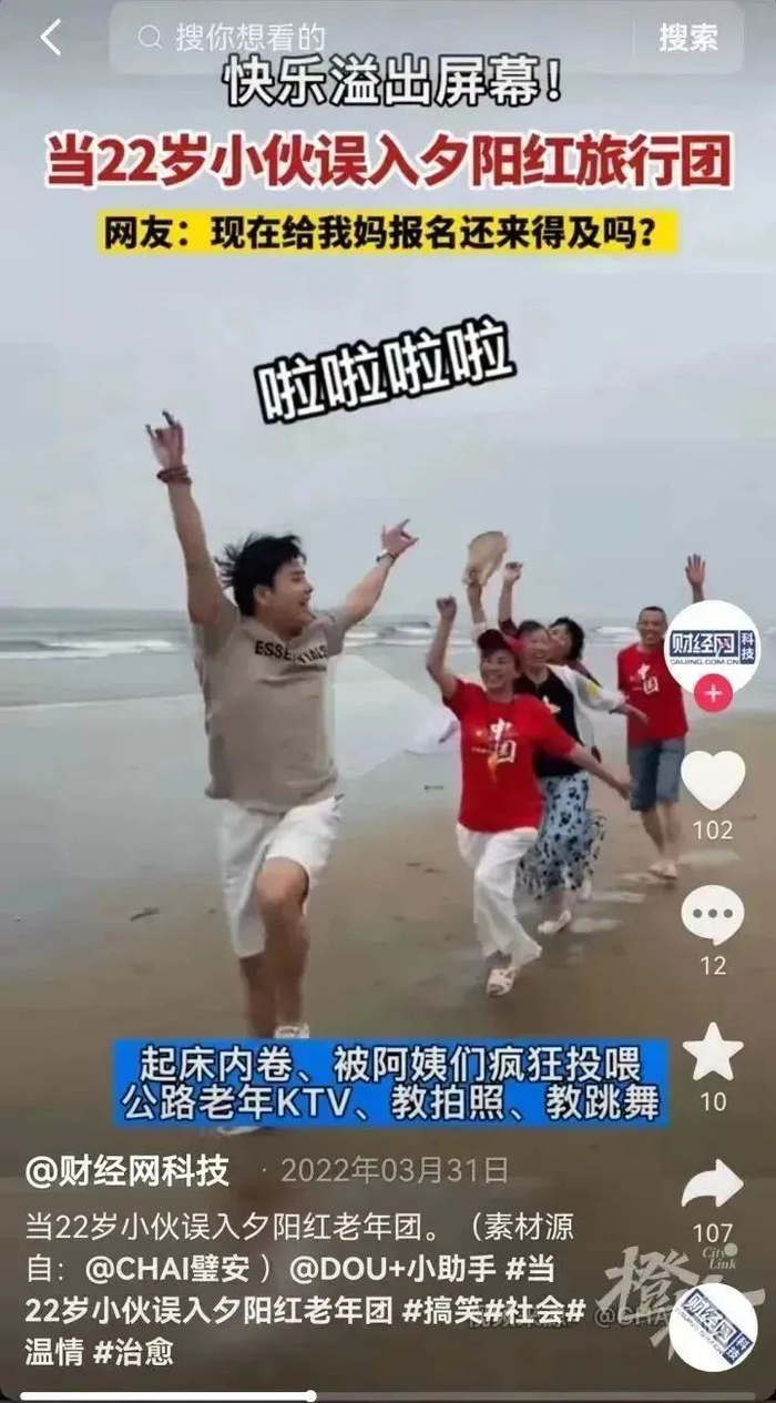 而实际上,据业内人士分析,这极有可能是一种网络新型的营销方式。小伙子可能本身就是从事旅游行业的,或是找了这个年轻人加入快乐老年团的切点,对旅途进行了重新包装,趁机可以吸引到年轻群体和老年群体两者的关注,以此引发大众共鸣和舆论热点。
