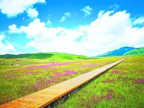 桑科草原属于高山草甸草原,地形起伏缓和,宽广无垠、水草丰美、牛羊肥壮、风景优美。每到夏季,草场碧绿如茵,格桑花、苏鲁花争奇斗艳,是草原旅游、避暑和体验藏族游牧生活、回归自然的理想之地。
