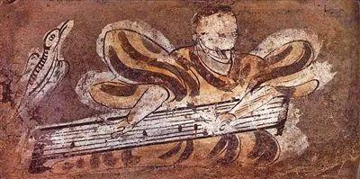 魏晋墓壁画中的抚琴图。
