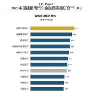 基于1000分制计算,银行的平均满意度为817分,较去年略有退步。中国工商银行以842分位列第一,中国建设银行、招商银行占据二、三名的位置。