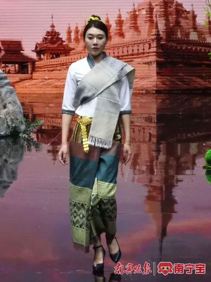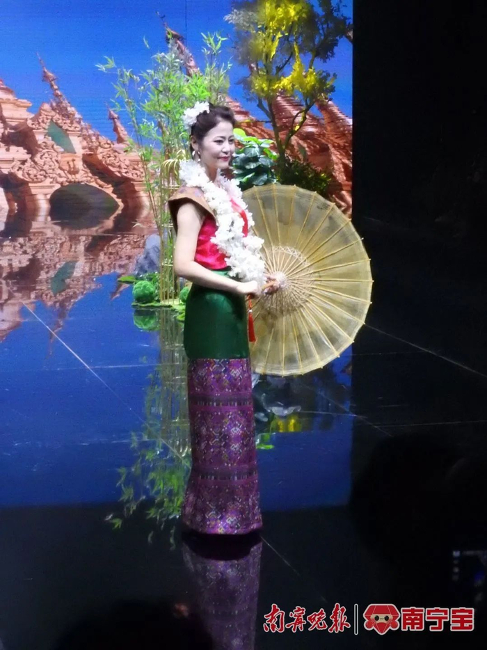 “东盟国家服饰秀”呈现东盟传统服饰文化,从风格、形式、色彩、材料等内容展现不同民族的审美特色,而秀美靓丽的模特演绎更是为其注入光彩,让观众领略东盟各国服饰的异域风情。美轮美奂的霓裳秀场带嗨了全场观众,引来观众阵阵掌声。