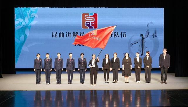 昆曲讲解员志愿服务队伍成立并授旗。近年来,越来越多的昆曲爱好者加入文化传播的“生力军”,助力讲好昆曲故事、传播昆曲文化。今年,昆山当代昆剧院面向社会公开招募讲解志愿者,得到了各行各业昆曲爱好者的踊跃报名,首批35名“昆曲讲解义工”入选并参加专业培训,即将光荣“上岗”,为昆曲传播助力。