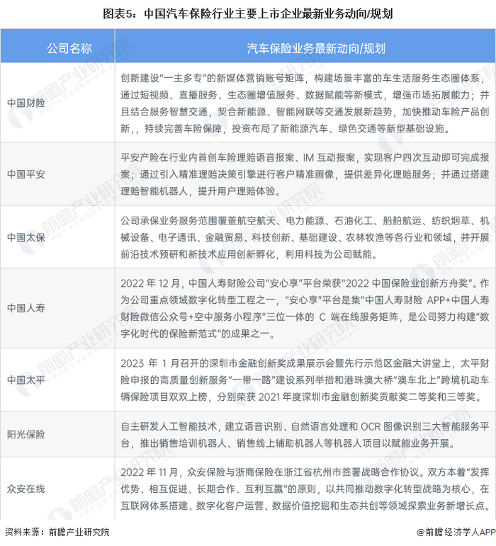 从企业最新业务动向或规划来看,各保险企业紧跟保险行业数字化、智能化的发展趋势,积极进行技术开发和创新,将新一代信息技术与业务发展融合,利用科技赋能企业发展。如中国人寿财险数字化创新产品“安心享”平台获奖;众安保险和浙商保险合作构建互联网和数字化运营体系。