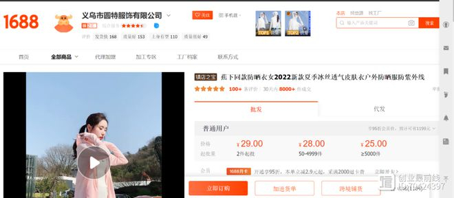 根据1688搜索信息显示,蕉下同款防晒衣两件起批的价格仅为29元,除了面料略有不同,其余均对版蕉下。