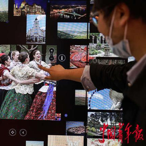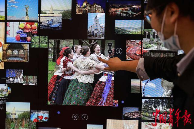 5月17日,浙江宁波,宁波国际会议中心,第三届中国-中东欧国家博览会暨国际消费品博览会上,工作人员操作匈牙利佰路得品牌的“魔墙”,显示出匈牙利民族风情影片。“魔墙”是世界上使用最广泛的文化场馆数字化互动大屏解决方案,在匈牙利国家美术馆、中国国家博物馆等欧亚多个顶级博物馆都能见到它的身影。中国的大多数省级博物馆也在使用“魔墙”技术,位于上海科技馆的一面互动触摸屏长达25米,可同时供50多名游客使用,是世界上最大的互动触摸屏装置。中青报·中青网记者 曲俊燕/摄