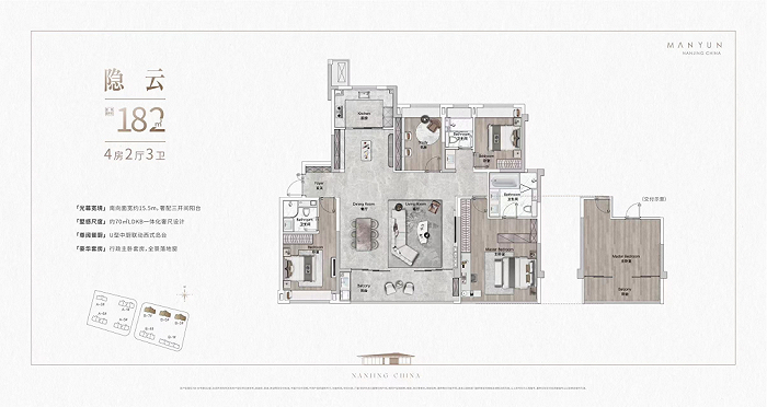 在户型上,项目打造了建筑面积约123㎡、143㎡、182㎡三大主力户型。