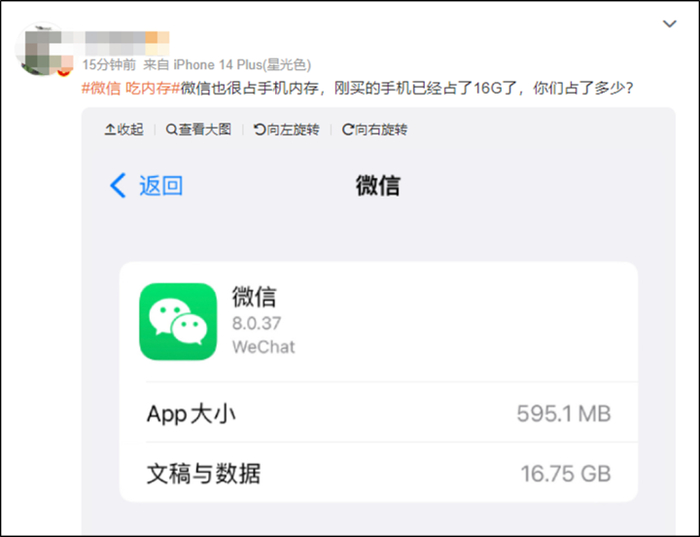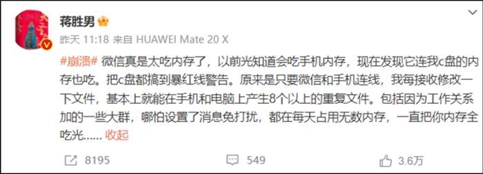 最让网友无奈的是:微信里存了好多文件资料、聊天记录,有的不能删,有的不舍得删.....
