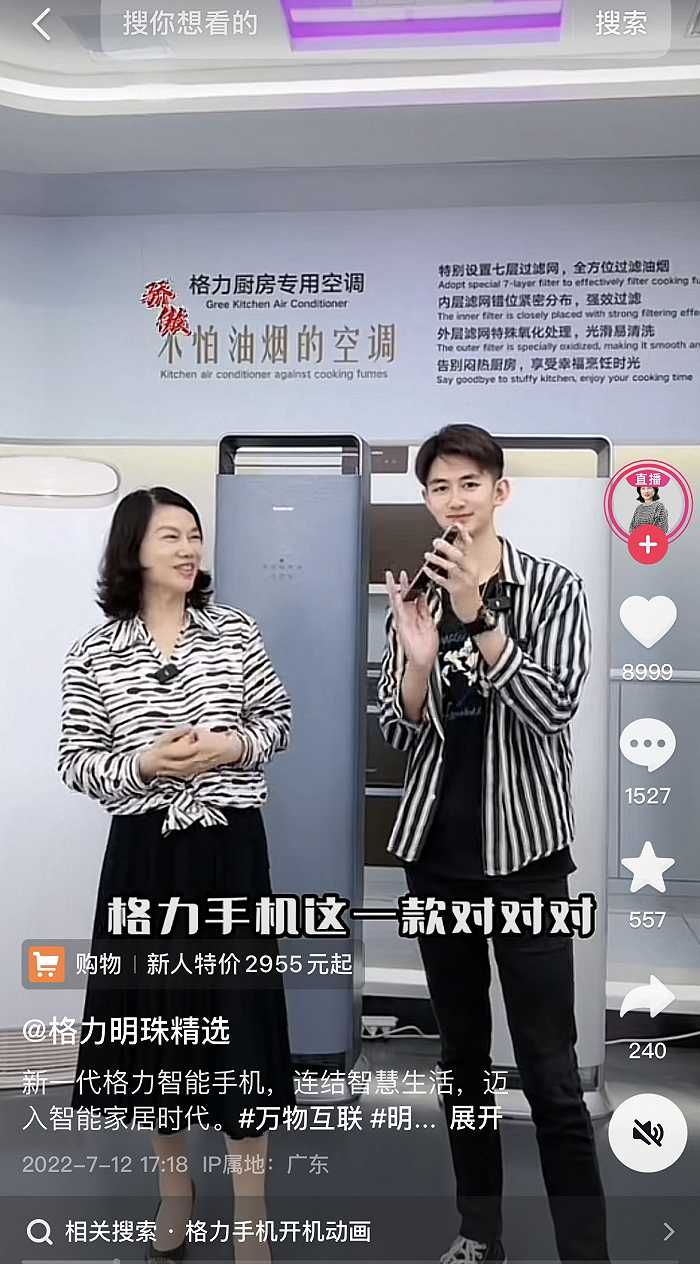 相比起手机,近来格力的重心放在销售渠道的革新上。去年底,珠海格力数字科技有限公司成立,据称,格力正打造“格力数字科技直播基地”,定位于“产业带直播+短视频带货的新零售模式”,并在格力电器珠海总部划出共2000平方米的直播间及服务中心,预计年度直播交易额达到8亿元人民币。
