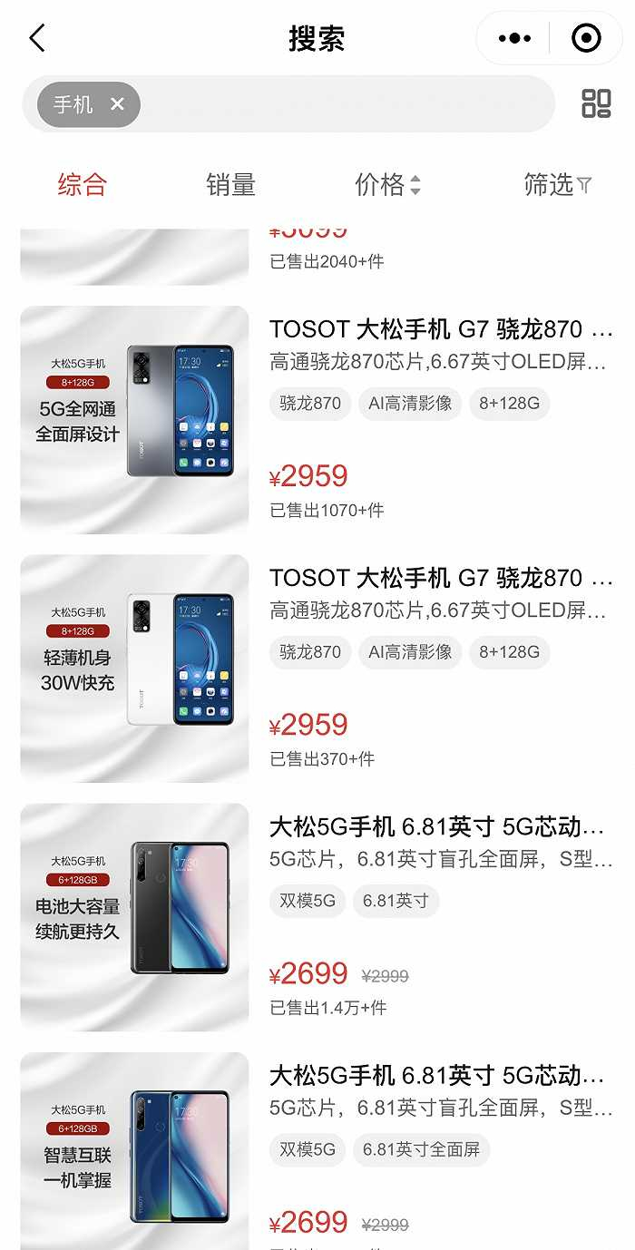 大松G7是格力最近一款新品,发布于2021年11月。上述产品均没有发布会、代言人等大规模宣传,仅低调上架,不过董明珠多次对外表达过关于手机产品的信心,为格力手机带来了关注度。在2022年数次董明珠本人出镜的直播中,她也曾为手机产品带货。不过在近期的直播和视频宣传中,格力手机已经不见踪影。
