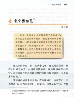 在北京的中心,有一座城中之城,这就是紫禁城。后来人们叫它故宫,也叫故宫博物院。这是明清两代的皇宫,是我国现存的最大最完整的古代宫殿建筑群,有五百多年历史了。