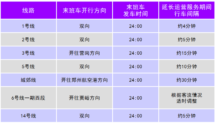 明天晚上,郑州地铁部分线路运营服务时间也会延长: