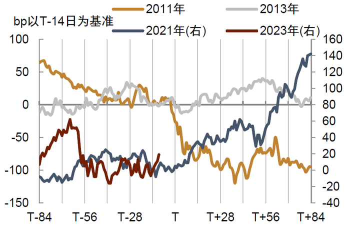 图表11:10Y美债收益率变动(T为当年“X日”)