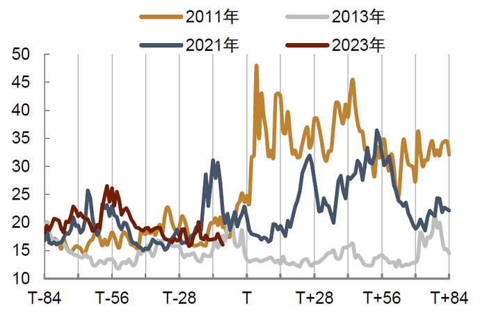 图表9:1Y美债收益率变动(T为当年“X日”)