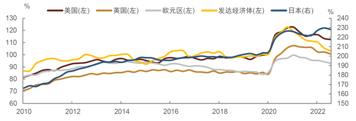 图表18:除日本外,美国政府部门杠杆率处于发达经济体中较高水平