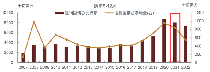 图表13:美债发行量仍高于去年同期但净增量明显下降
