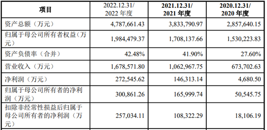 报告期内,公司营业收入分别为673,702.63万元、1,062,967.75万元、1,678,571.80万元,实现净利润分别为4,680.50万元、146,313.14万元、272,545.62万元。