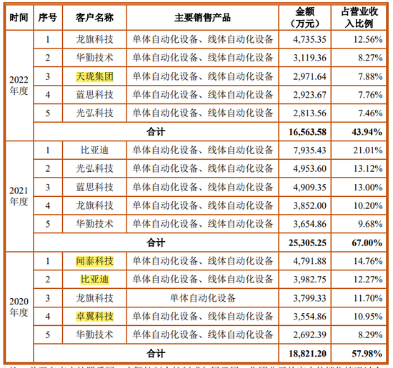 公司与华勤技术、闻泰科技、龙旗科技、比亚迪、富士康、蓝思科技、光弘科技等消费电子产品产业链中的大型ODM/EMS企业存在直接业务关系。报告期内,公司来自前五大客户的营业收入占当期营业收入的比重分别为57.98%、67.00%和43.94%,客户集中度较高。