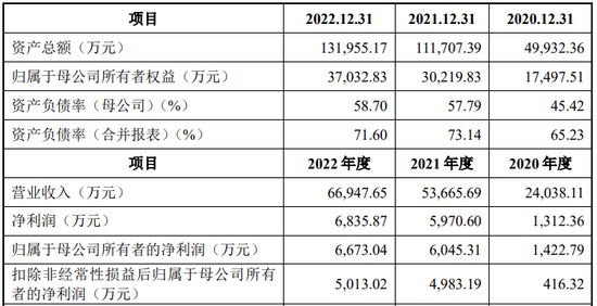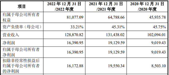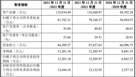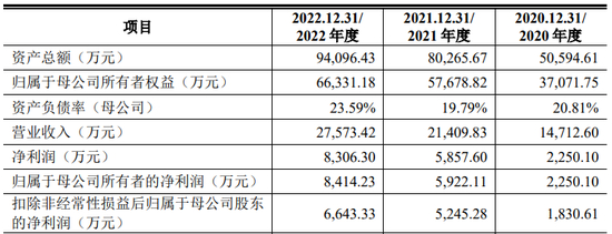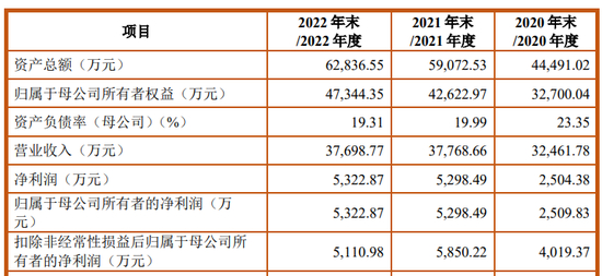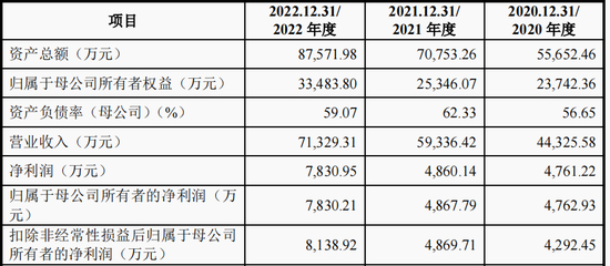 招股说明书显示,报告期内,营业收入分别为10.21亿元、13.14亿元、12.89亿元;净利润分别为9,019.43万元、1.91亿元、1.64亿元。2022年度较2021年度净利润下滑14.32%。