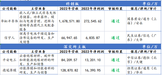本周IPO共审核8家公司,7家获通过,1家暂缓审议。上交所科创板审核2家获通过,其中华虹半导体净利润逾27亿,系科创板最大IPO之一;深交所审核2家获通过,创业板审核4家,3家获通过,1家暂缓审议。