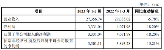 与此同时,德冠薄膜披露的2023年第一季报的业绩数据依旧差强人意:2023年1-3月,发行人经审阅后的营业收入为27,356.74万元,与去年同期相比下降5.78%;净利润及归属于母公司股东的净利润均为3,331.04万元,与去年同期相比下降18.20%;扣非归母净利润为3,301.11万元,与去年同期相比下降15.21%。