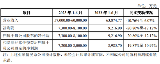 2023年1-6月,发行人预计实现营业收入57,000.00万元至60,000.00万元,较去年同期下降10.76%至6.07%;预计实现净利润和归属于母公司股东的净利润7,300.00万元至8,100.00万元,较去年同期下降20.80%至12.12%;预计实现扣除非经常性损益后归属于母公司股东的净利润7,200.00万元至8,000.00万元,较去年同期下降19.87%至10.97%。发行人2023年1-6月业绩同比下滑主要系受市场因素和原材料价格下降影响,主要产品销售价格有所下降。