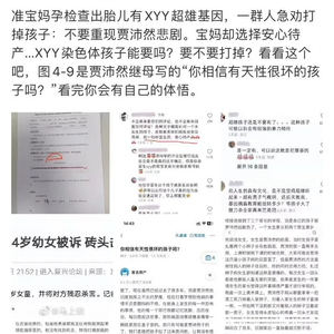 据界面新闻报道,5月16日,某自媒体博主称,“准宝妈孕检查出胎儿有XYY超雄基因,一群人急劝打掉孩子:不要重现贾沛然悲剧。宝妈却选择安心待产…XYY染色体孩子能要吗?要不要打掉?”此言论一出,引发网友对超雄基因、犯罪、堕胎话题的关注。
