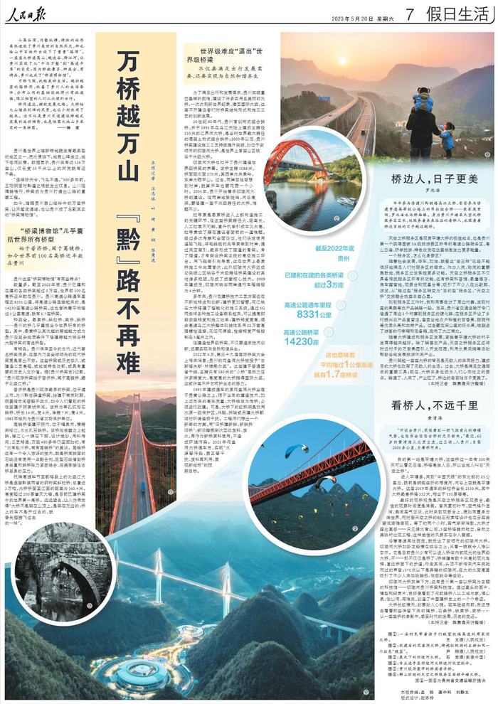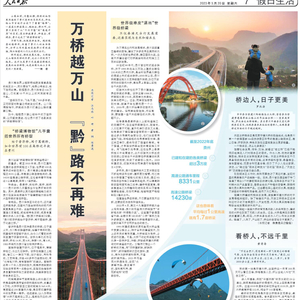 5月20日,《人民日报》整版刊发《万桥越万山 “黔”路不再难》一文,重点关注贵州桥梁。具体报到如下: