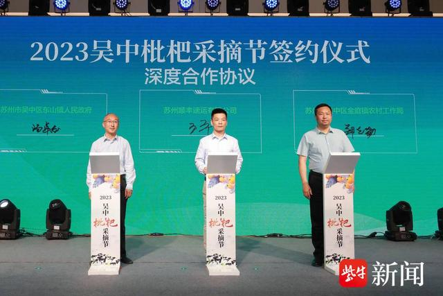 吴中农发集团与金岛公司、东山双湾村签订枇杷供销合作协议。东山镇、金庭镇与顺丰快递签订战略合作协议。
