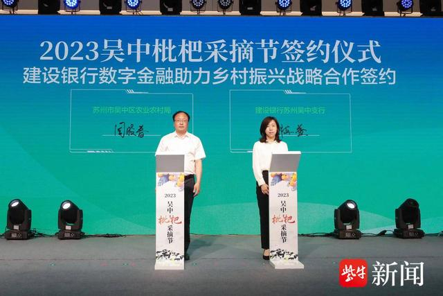 活动现场还举行了签约仪式,吴中农发集团与东山镇签订东山枇杷产业园共建合作协议,建行银行数字金融助力乡村振兴战略合作签约。