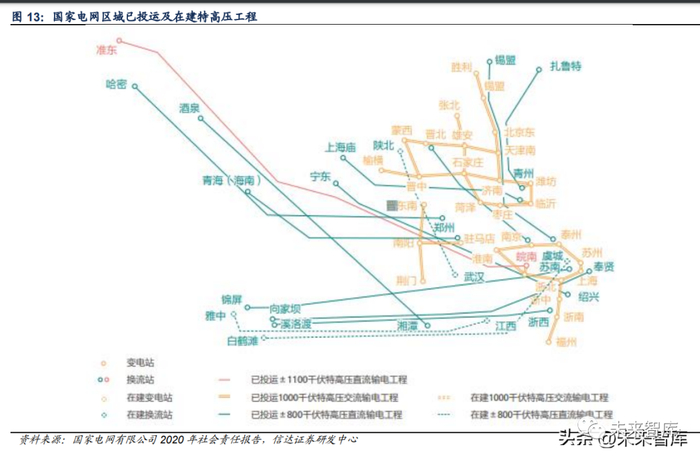 在“十四五”期间,大型风电光伏基地成为“双碳”目标下新能源建设的中流砥柱,并在 不断地加速推进。大型风电光伏基地大多位于三北和西南地区,其建设将扩大上述地区发 用电不平衡性。考虑到特高压工程建设周期较长(平均周期为 1.5-2 年),明显高于风电与 光伏建设周期,其建设工作理应更早启动。