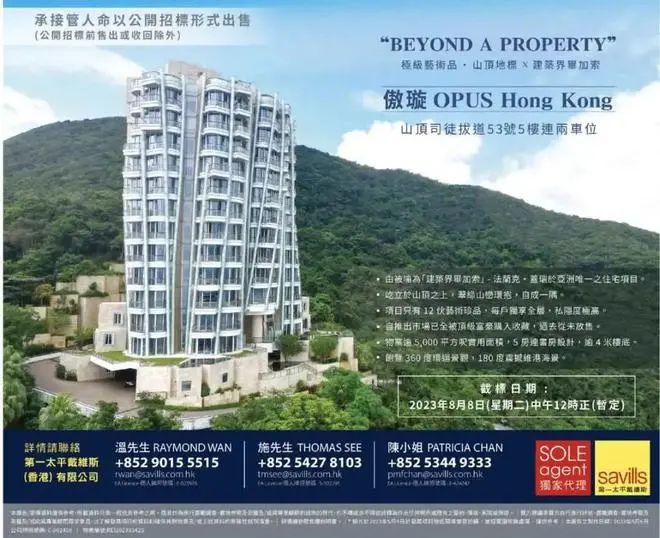 原来这个被拍卖的顶级豪宅,是深圳商界大佬祥祺集团主席陈红天旗下的,2015年8月,陈红天与妻子联名斥资3.87亿元一手购入这个顶级豪宅——港岛东半山豪宅傲璇(OPUS)5楼单位连同两个车位,并自住至今。