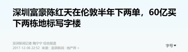 陈红天的这次危机可以追溯到其2017年投资英国地产。