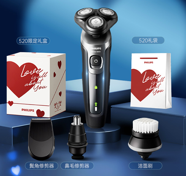 当然,剃须还可以更进一步,飞利浦电动剃须刀520礼盒内含电动剃须刀s5166、洁面刷、鼻毛修剪器、鬓角修剪器,一机四用,能一次性满足他对脸部清洁的四大需求,打造清爽型男易如反掌。