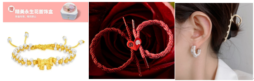 珠宝饰品本身蕴含佩戴、收藏等多重价值,在特定的情形中送给特别的人,美好的寓意更为可贵。项链与“相恋”谐音,因此赠送项链有我想与你相恋的意思,520礼遇季爆款榜单为用户推荐潮宏基在逃公主黄金珍珠项链,蝴蝶结设计俏皮可爱,为表白加分让浪漫升级。手链与“守恋”谐音,有珍视恋情之意,热恋中的情侣可选择RASTACLAT情人节限定小狮子礼盒,创意心心相吸磁吸中扣设计寓意永不分离。耳饰代表愿意一生一世聆听爱人的心声,Arsis流光系列耳饰流动曲线更具随性美感,送女友既有意义又彰显审美品位。想要求婚则可考虑LightMark小白光经典六爪钻戒,简约大气的设计更能凸显钻石的闪耀。此外,520礼遇季还带来KVK脚链、ROCK&RIDE吊坠等个性化饰品,为消费者带来更多元的饰品选择。