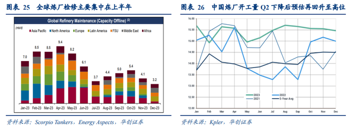 进口端,亚洲炼厂检修导致原油进口需求减少,而短期需求转弱为季节性正常波动,预计后续检修季结束后7-8月原油进口需求或将重新释放。