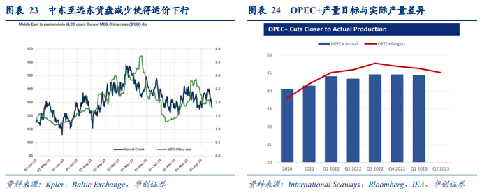 出口端,OPEC+减产下中东原油出口减少利空VLCC运需,后续实际减产执行程度和出口边际变化或取决于油价波动与终端消费,同时关注美湾等地潜在的出口增量对冲。