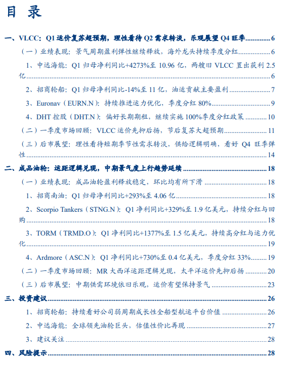 1)中远海能,Q1归母净利同比+4273%至10.96亿,两艘旧VLCC置出获利2.5亿。