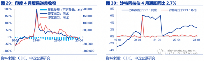 印度4月贸易逆差收窄,沙特阿拉伯4月通胀基本与上月持平。4月印度贸易逆差收窄至152.4亿美元,这也是自2021年8月以来最小的逆差,主要得益于进口量的大幅回落,出口同比-12.7%,进口同比-14.1%。4月沙特阿拉伯CPI环比0.4%,同比2.7%,高于市场预期,与上月基本持平。