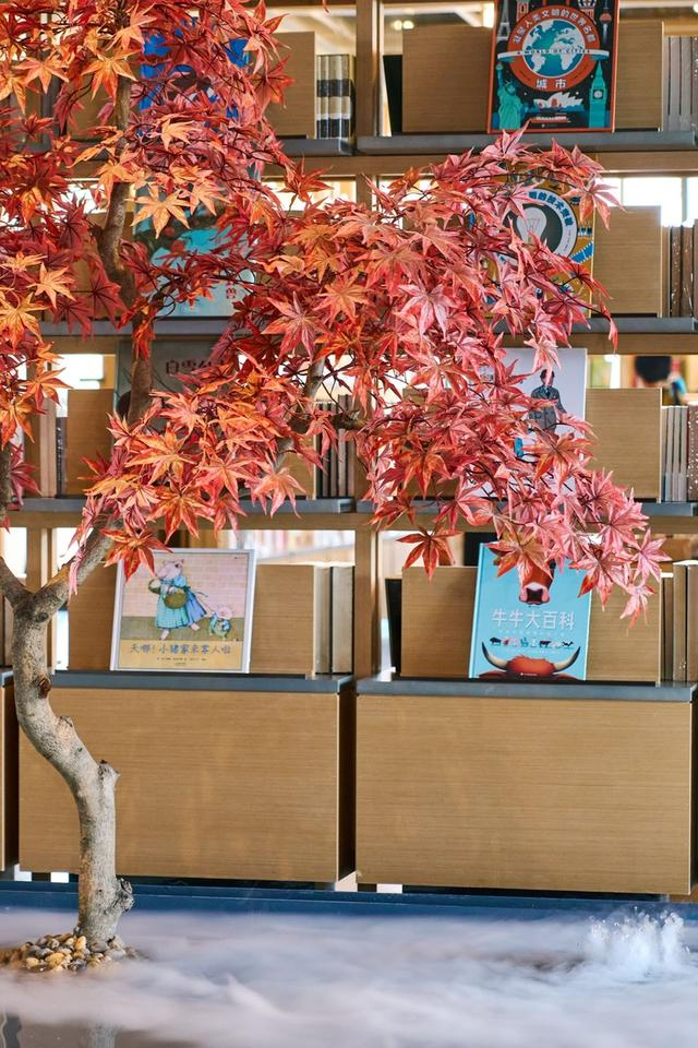 这家朵云书院的面积超过1000平方米,几乎占据了酒店整个一层,还有舒适的二楼露天平台。书店设计灵感来自苏州园林,以“新·游园惊梦”为主题,店内充满江南文化元素。书店中的空间自然形成透景、框景,同时大量使用榫卯结构书架墙、宣纸墙面等非遗元素,有1.6万册图书和1000款文创好物,让读者在书海中移步换景。图书类别上不仅涵盖传统的文学、艺术、经管、人文社科、童书等,还增加了符合酒店休闲人群的生活类别如咖啡、红酒、美食等题材图书,并设立四个特色主题书架:云上书榜、国潮听韵、凝望姑苏、女性视角。