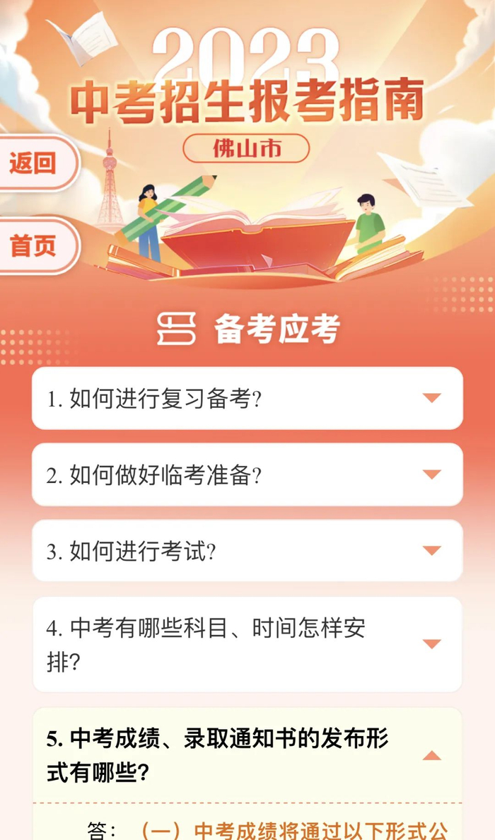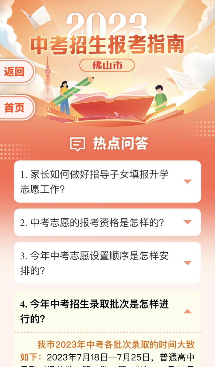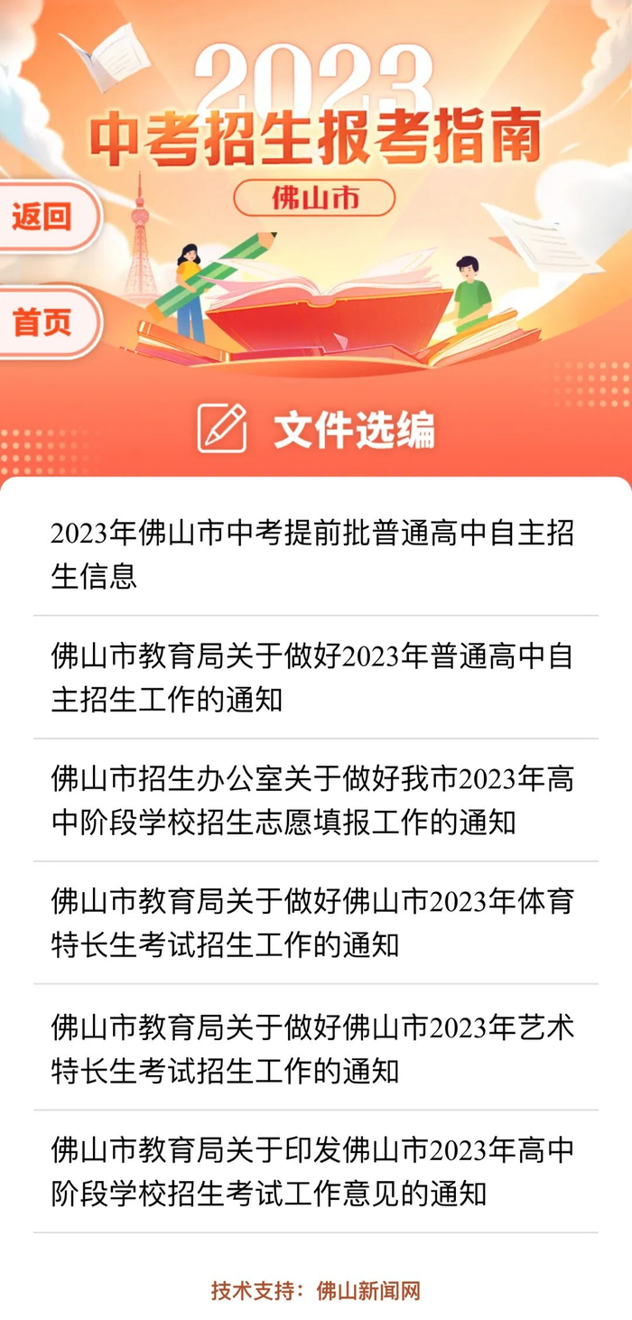 中考招生报考指南中如有与2023年正式公布的佛山市教育局、佛山市招生办的有关招生文件和计划不符之处,以市教育局、市招生办公布的招生和计划文件为准。由于编制时间仓促,部分内容需补充或更正的,敬请留意佛山招考网公告。