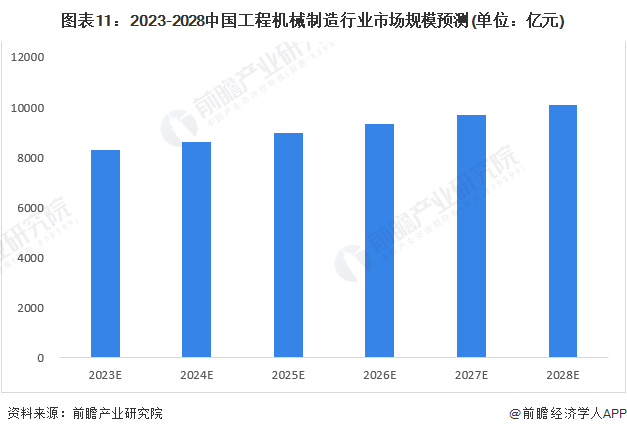 根据工程机械行业“十四五”规划提出的发展目标,结合目前工程机械行业发展现状,前瞻预计,2023-2028年,中国工程机械行业市场规模复增速为4%,2028年,中国工程机械行业市场规模将超万亿元。