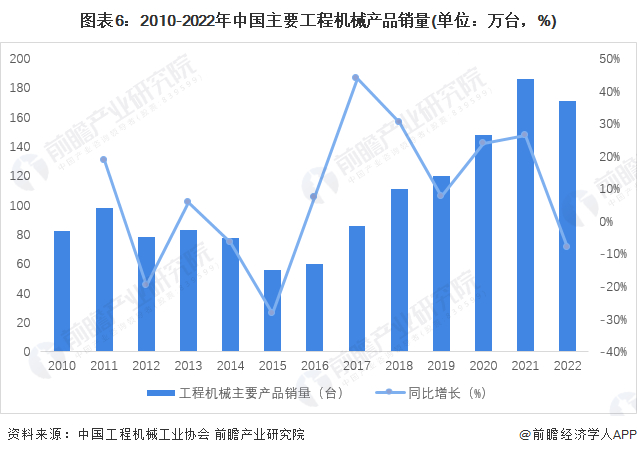1、工程机械产品销量:2022年销量近171万台