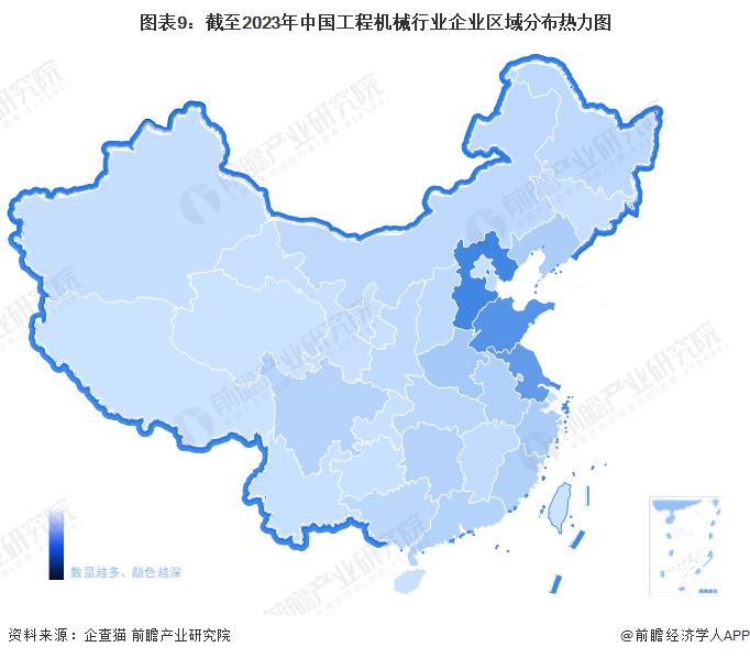 根据国家统计局《国民经济行业分类(2019修订版)》标准,工程机械制造隶属于“C、制造业”中的“35、专用设备制造业”。结合此分类,前瞻在企查猫中进行企业分布筛选,结果显示截止2022年4月14日,中国工程机械累计注册企业在河北省分布企业最多,山东省、江苏省等地工程机械注册企业分布数量也较多。
