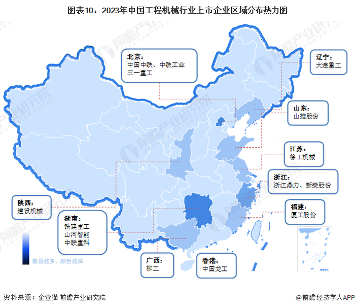 从工程机械行业上市公司的地区分布来看,北京、浙江和湖南工程机械行业的上市企业数量最多,其中高空作业平台领军企业之一浙江鼎力(603338)就位于江苏。江苏、福建和辽宁等地区工程机械行业的上市企业数量亦较多,有徐工机械(000425)、厦工股份(600815)和大连重工(002204)等上市企业。